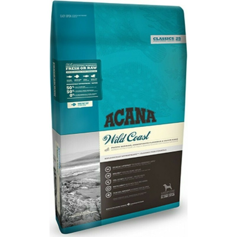 Acana Wild Coast dry food contains nutritious protein and omega-3 fatty acids. Its main ingredient is fish. It is a carbohydrate-free food with a high glycemic index. It features low glycemic index and locally grown oats.